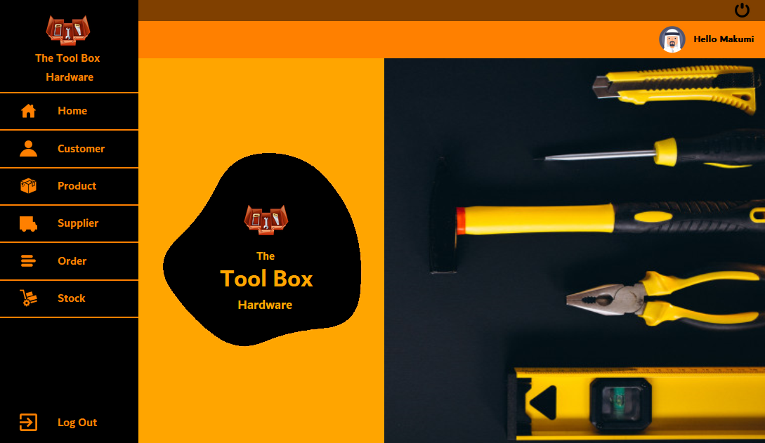 This project is about a sales management system where it can track these 5 entities: the products, suppliers, customers, orders and stock. It contains only the admin section where he/she can add, update, delete and generate reports on these 5 entities. It's not only limited to a hardware shop, it can be used by any type of business.